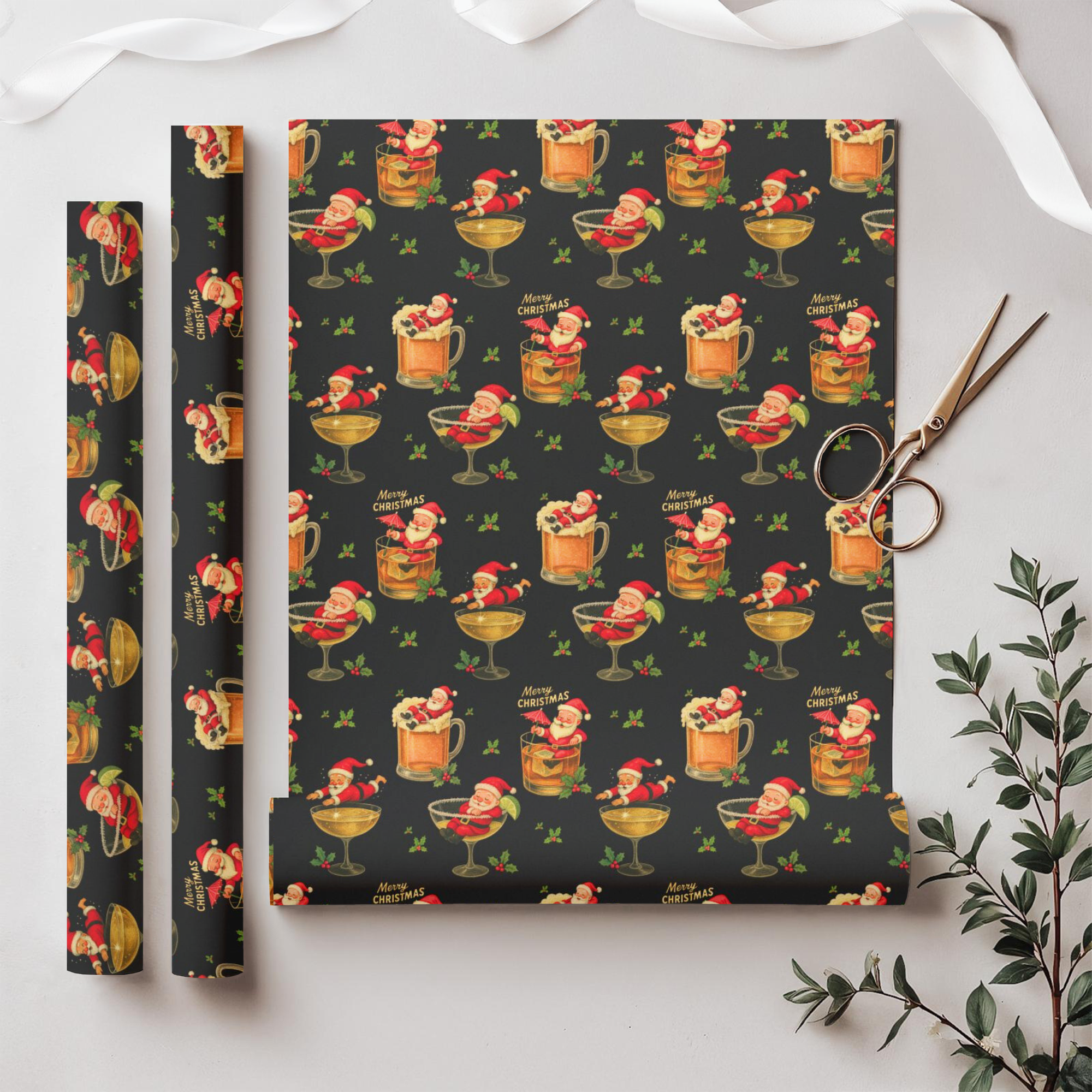 Space-Age Santa Wrapping Paper – Retro Rocket Ride with Rudolph