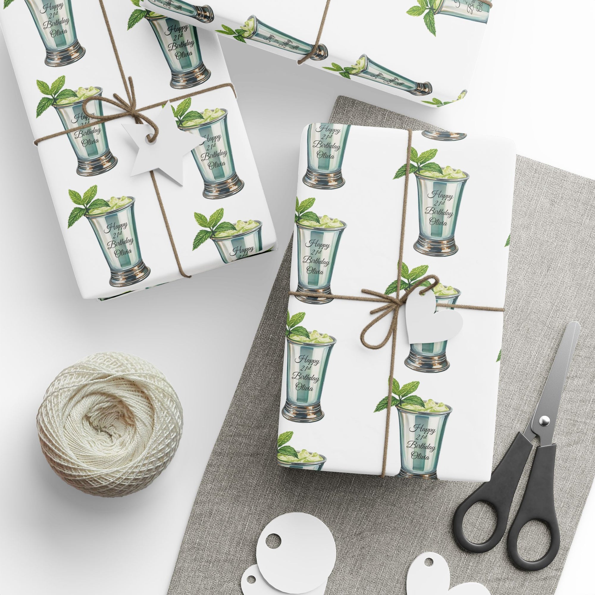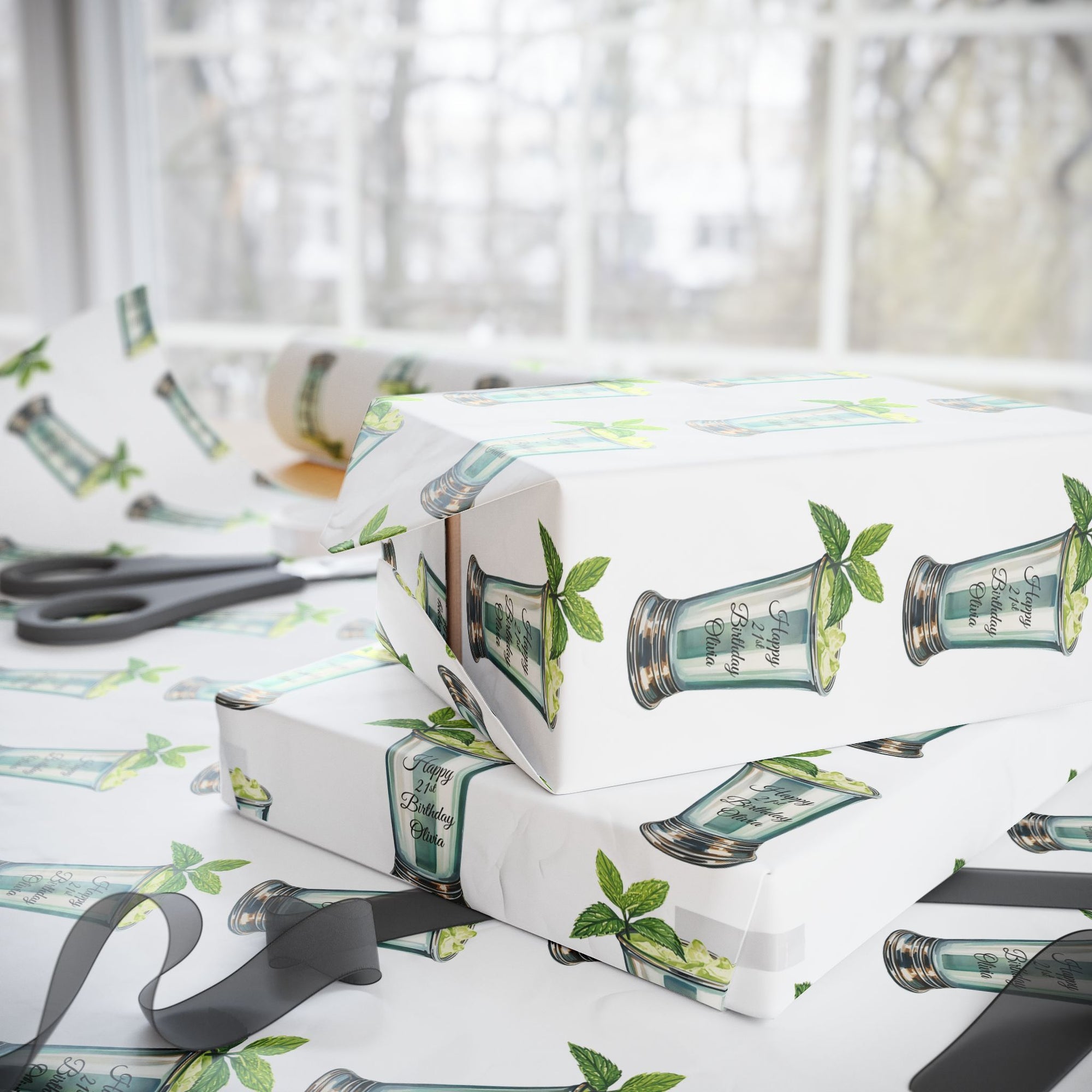 21st Birthday Wrapping Paper – Mint Julep Cocktail with Fresh Mint | Personalized Milestone Gift Wrap