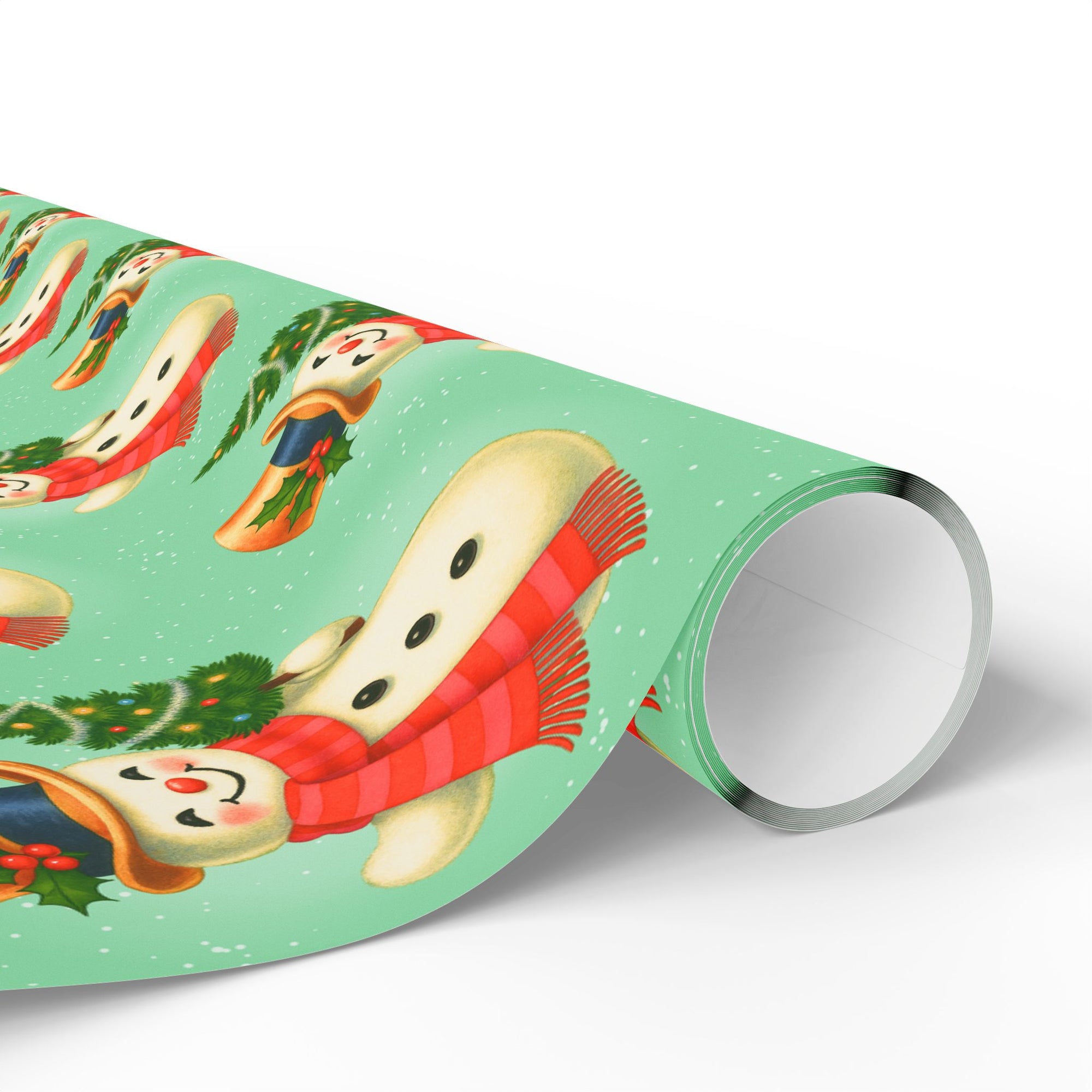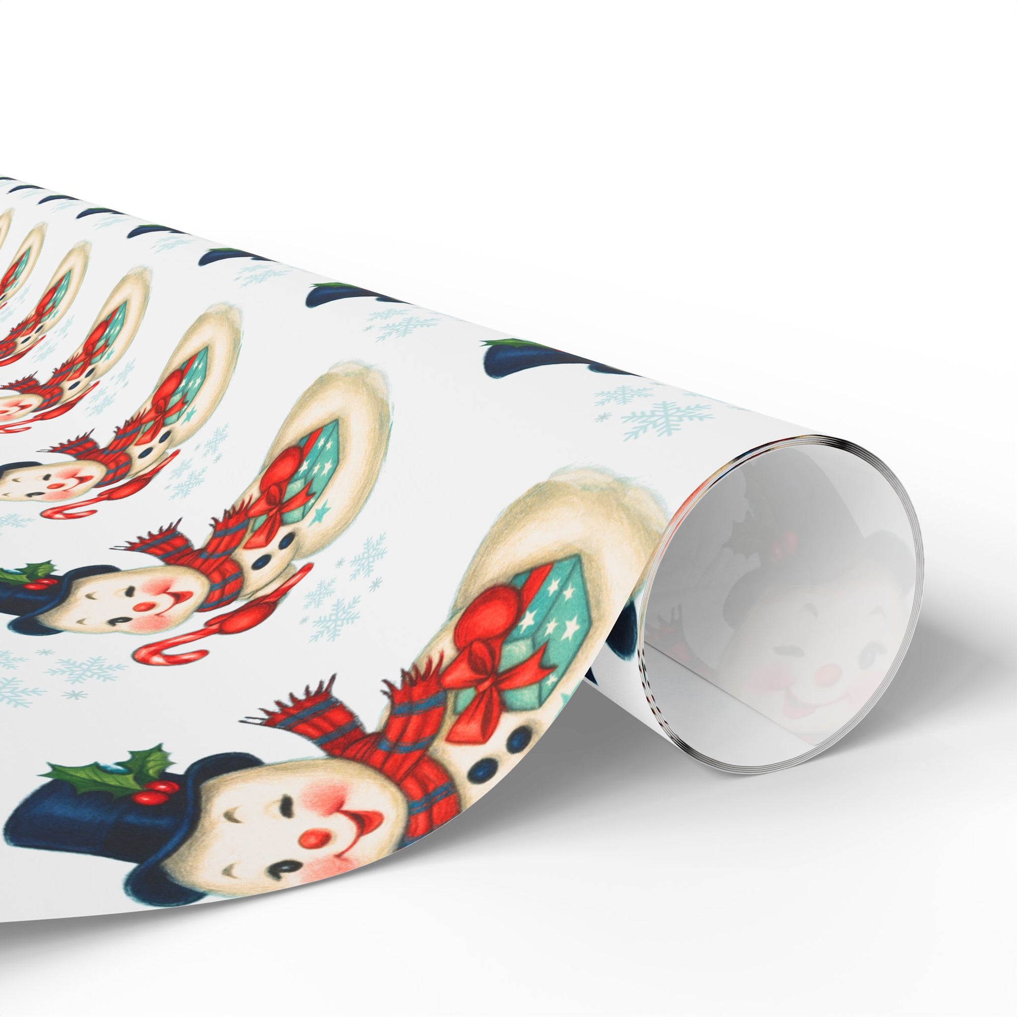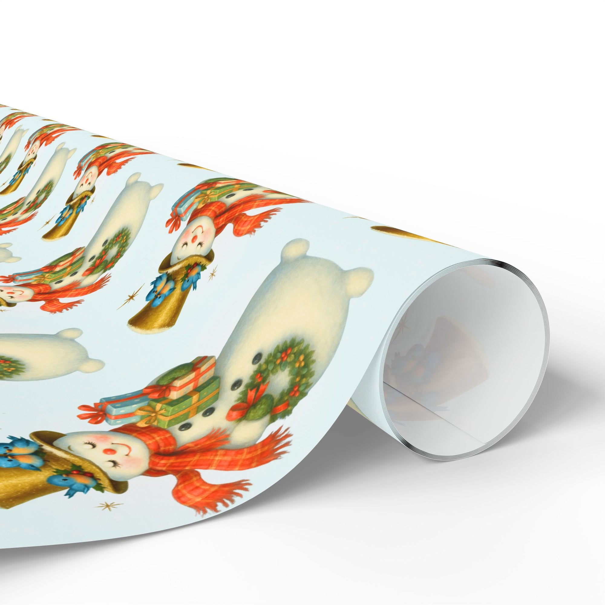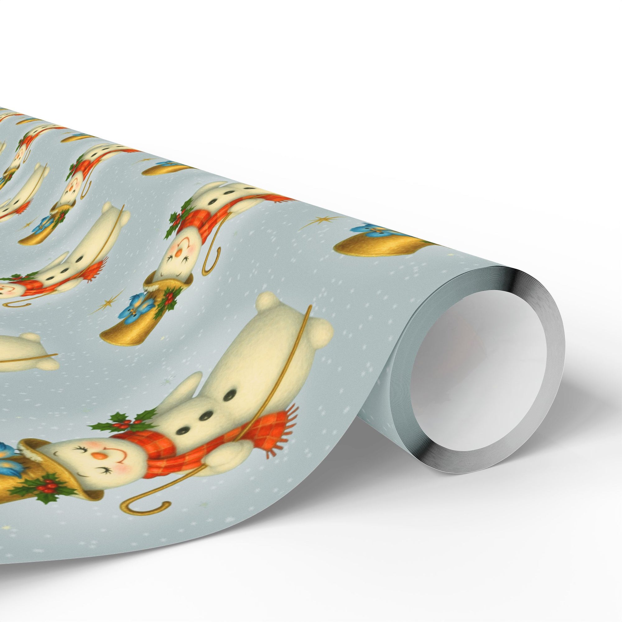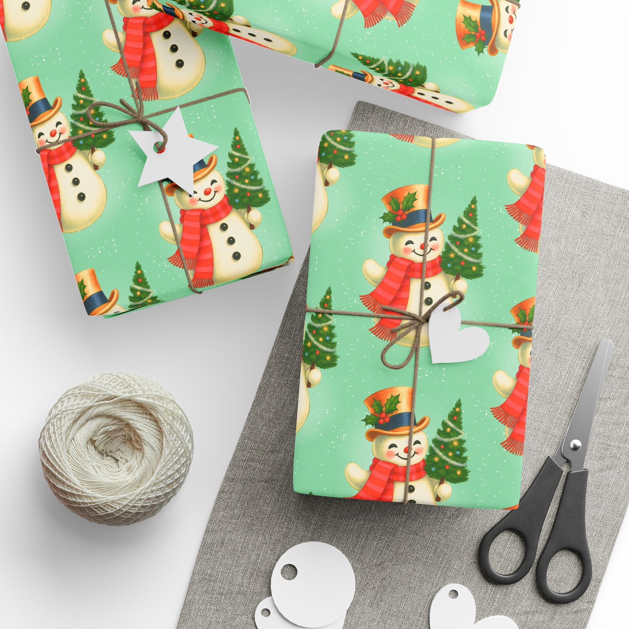 a  box that is wrapped in a christmas design that features a snowman and american flag against a light blue background